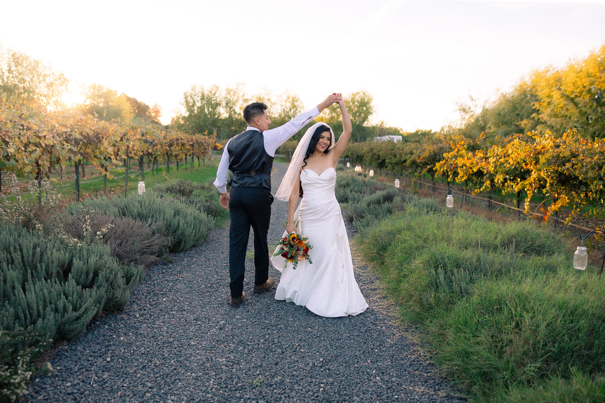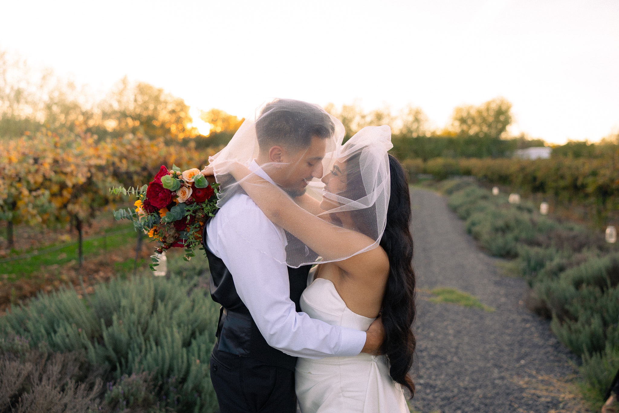 As the sun dipped low, we slipped out into the vineyards for golden hour portraits, and the light did not disappoint. Wrapped in warm tones and soft skies, Byron and Jema shared sweet, unposed moments that felt timeless against the rolling vines. It was the kind of evening that reminds you why intimate, down-to-earth celebrations in beautiful places like Richards Ranch are so special.